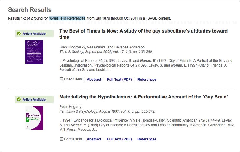 Cited reference searching is a way of finding articles that have cited previously published research. Because many databases index each citation listed in a bibliography, it is possible to search the cited references. You can follow a particular cited reference, or cited author, forward in time to find more current articles that have also cited that author or research.