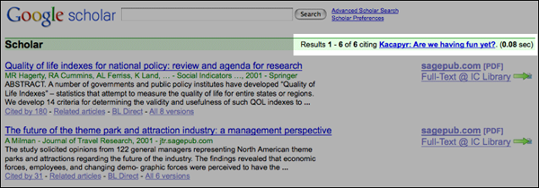 Google Scholar enables you to do cited reference searching even if you do not have access to the Library's databases. Once you find a known article in Google Scholar, you can see how many other subsequent articles have cited it. Below are screenshots for a search for articles that cite Dr. Elia Kacapyr.