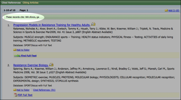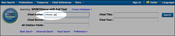 This search will produce a list of Dr. Sforzo's papers that have been subsequently cited in the SPORTDiscus database.