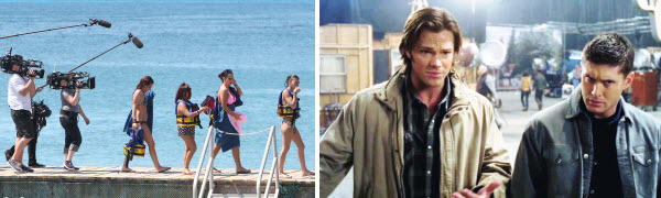 Right: Characters from Supernatural visit a world where they are actors in Supernatural.