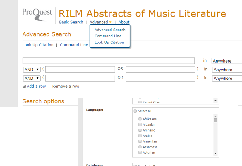Look for Language under the Search Options section. This method is fairly uniform from database to database.