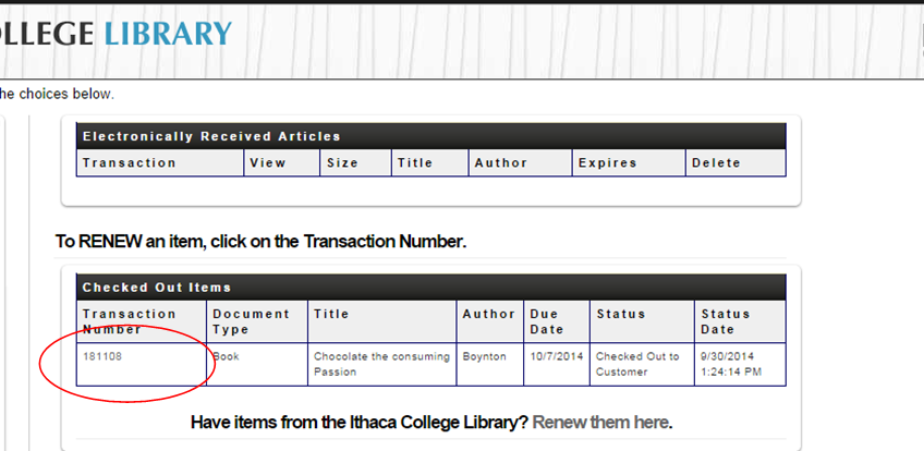 - When your ILL material arrives, notification will be sent to your Ithaca College e-mail account.