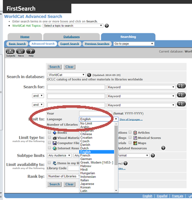 Many of the databases at Ithaca College allow you to limit your search by language.