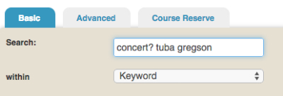 - Include known instruments, key, opus nos., and the composer's name (see example for finding a tuba concerto -- note: search is not case sensitive)